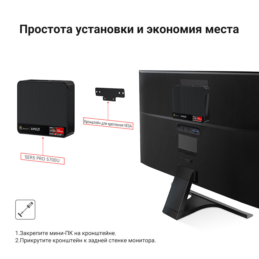 Мини ПК Beelink SER5 Pro (AMD Ryzen 7 5700U, RAM 16 ГБ, SSD 500 ГБ WiFi6 BT5.2 Windows 11 Pro Микрокомпьютер),черный интересное: