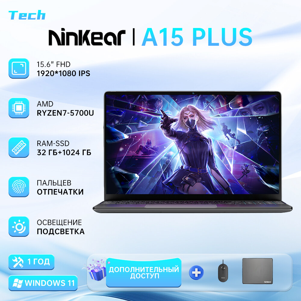 Ninkear A15 Plus ноутбук 15.6", AMD Ryzen 7 5700U (1.8 ГГц), RAM 32 ГБ, SSD, AMD Radeon Vega8 Graphics, Windows11 Home, серебристый интересное: