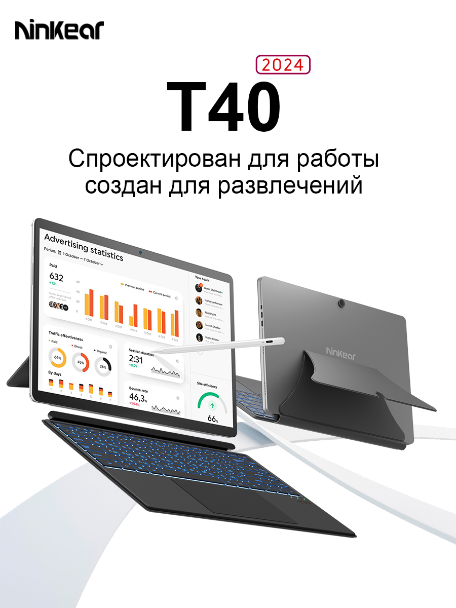 Ноутбук Ninkear T40 «2-в-1», 14" сенсорный экран Full HD IPS, Intel N100, 16 ГБ DDR5 + 512 ГБ SSD, Wi-Fi 6, Windows 11 интересное: