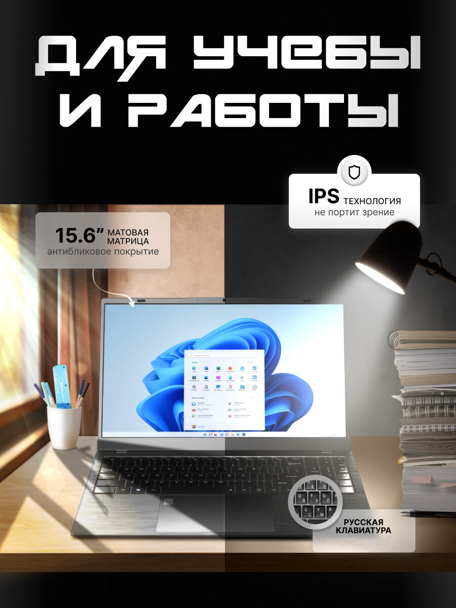 Купить Премиальный ноутбук 15,6" IPS, Intel N95 4*3,4GHz, RAM 16Gb, PD Type-c, 1080p camera, 6000mAh, 128Gb SSD nvme