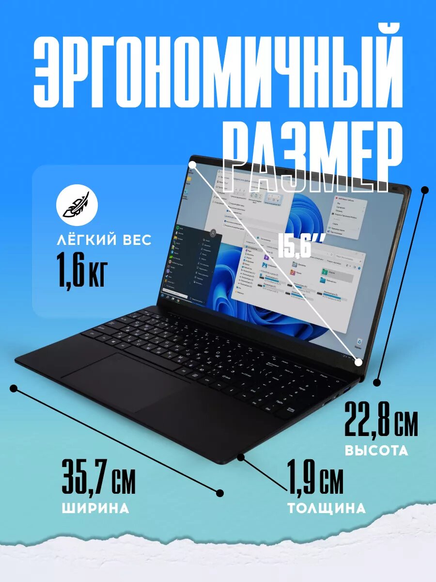 Ноутбук черный Intel Celeron N5095 15,6", 16GB, 512GB SSD, Intel UHD, Win11 Pro