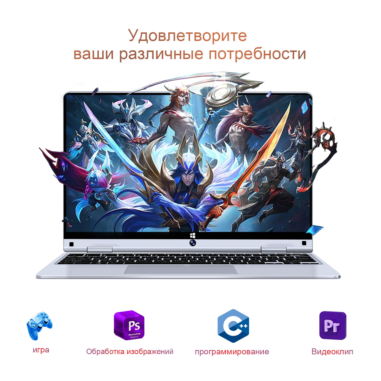 Купить Ноутбук с сенсорным экраном 11,6 дюйма, 256 ГБ, откидывается на 360 градусов