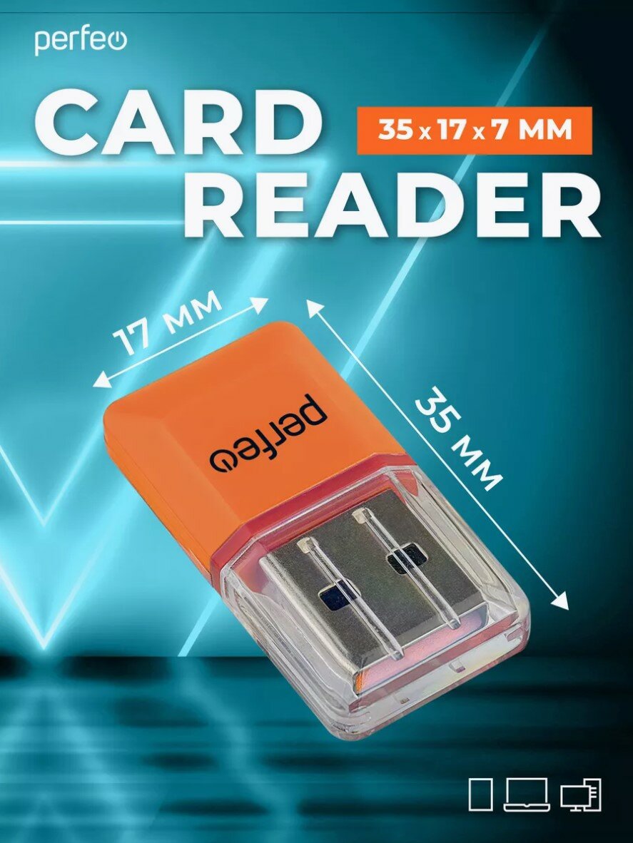 Купить Кардридер SD карт Perfeo, USB 2.0 адаптер, PF-VI-R008, оранжевый