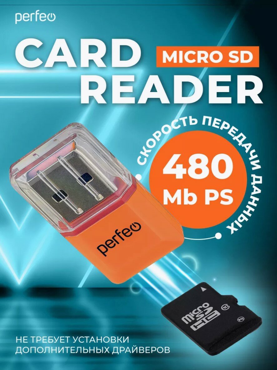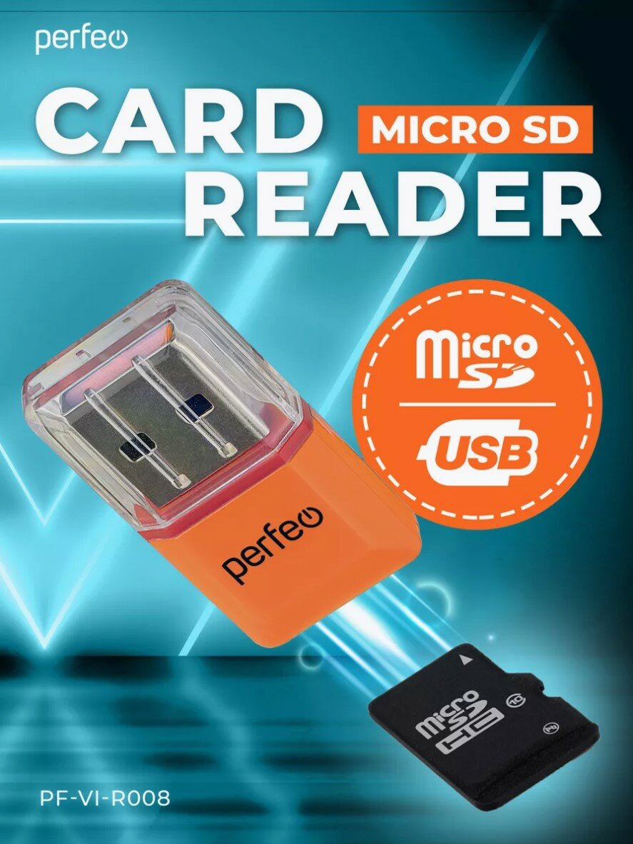 Картридер Perfeo Card Reader Micro SD, (PF-VI-R008), черный