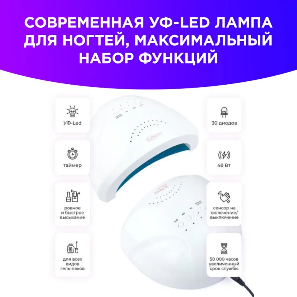 SUNone Лампа для сушки ногтей 48 Вт, LED-UV белый интересное: