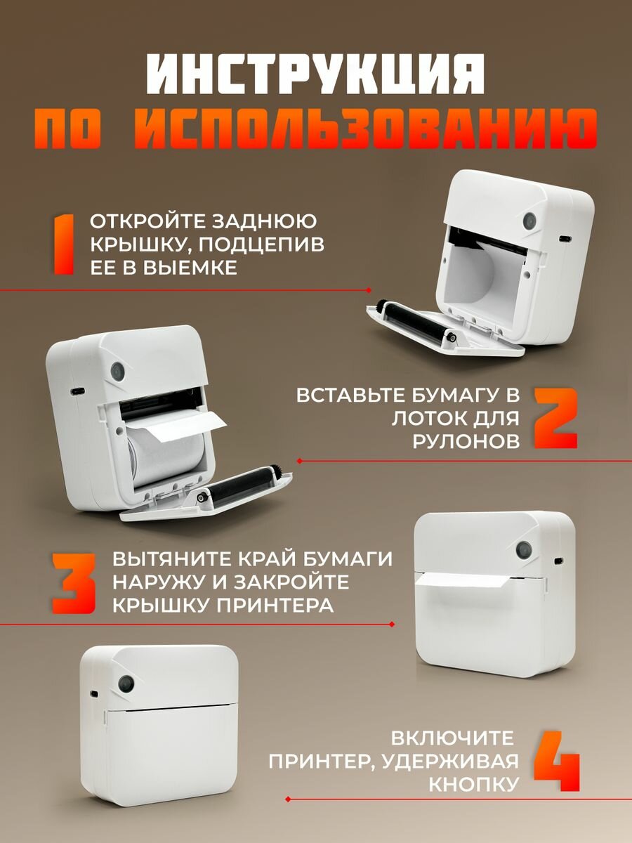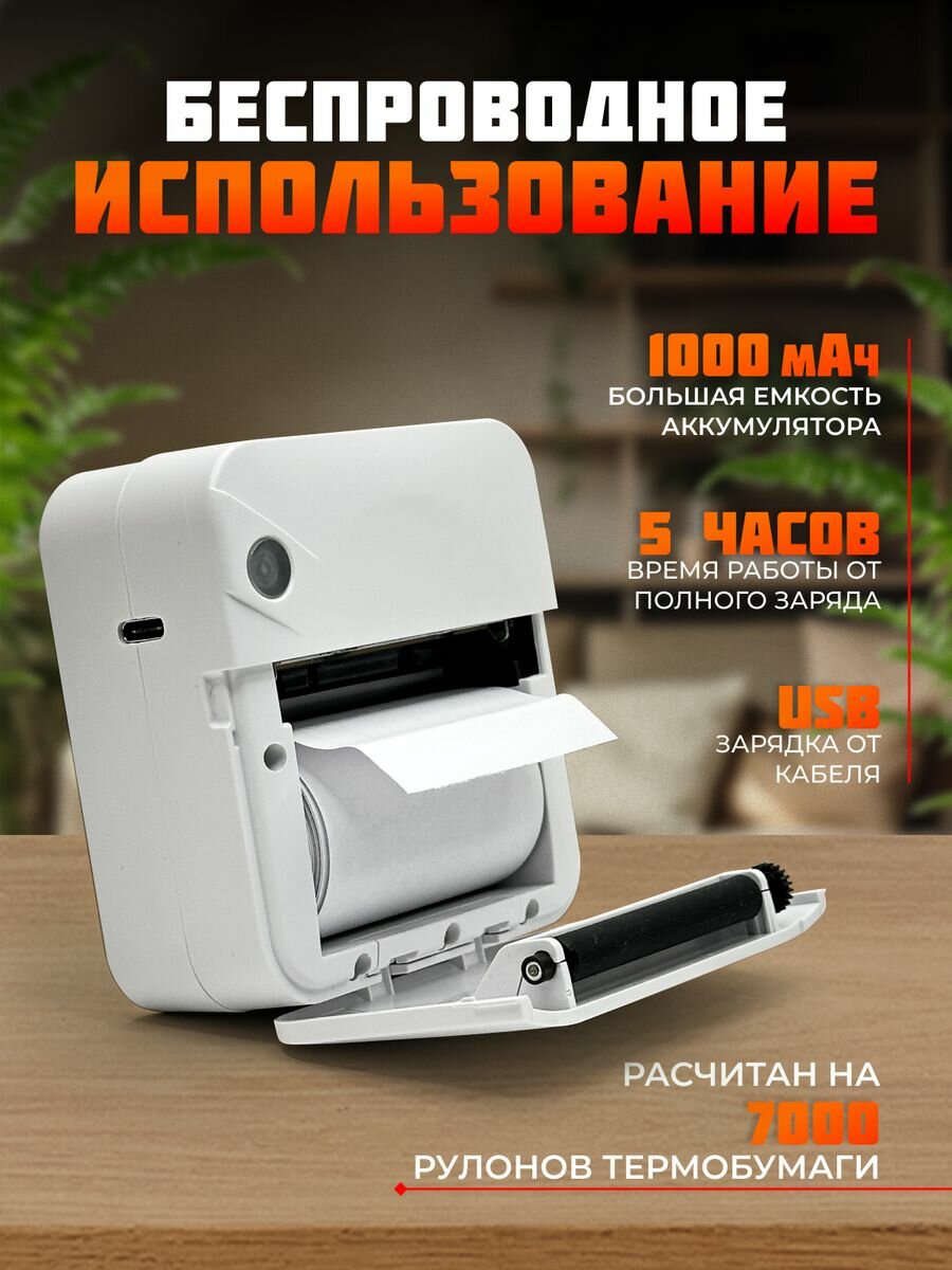 Портативный мини термопринтер для печати с телефона