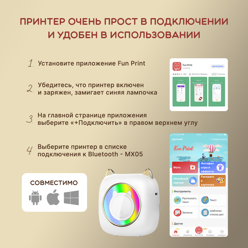 Купить Мини принтер портативный для телефона для наклеек и стикеров
