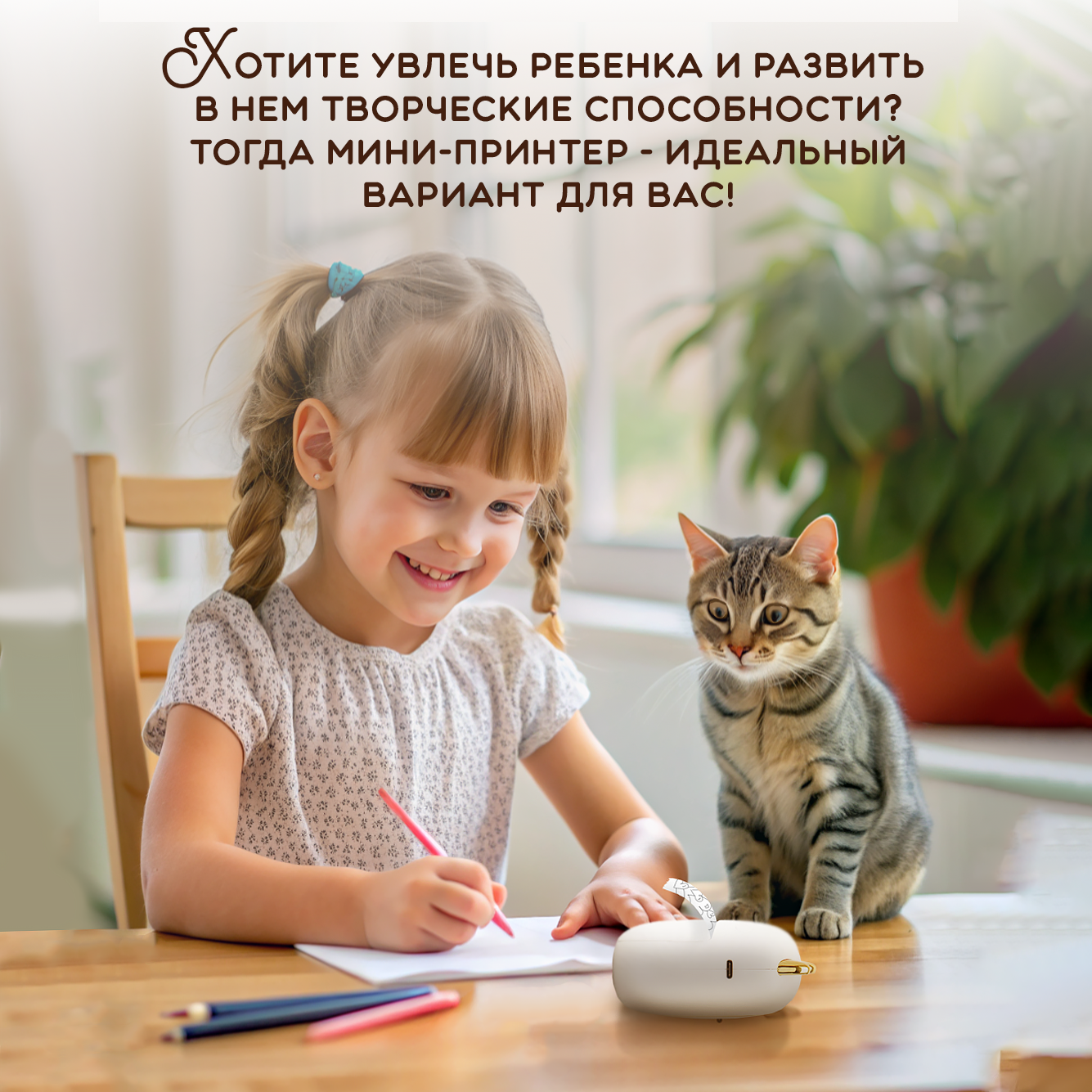 Детский мини принтер для телефона беспроводной 2 в 1