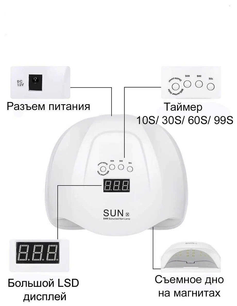 SUN Лампа для сушки ногтей X, 54 Вт, LED-UV белый