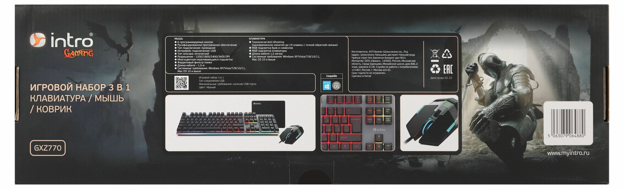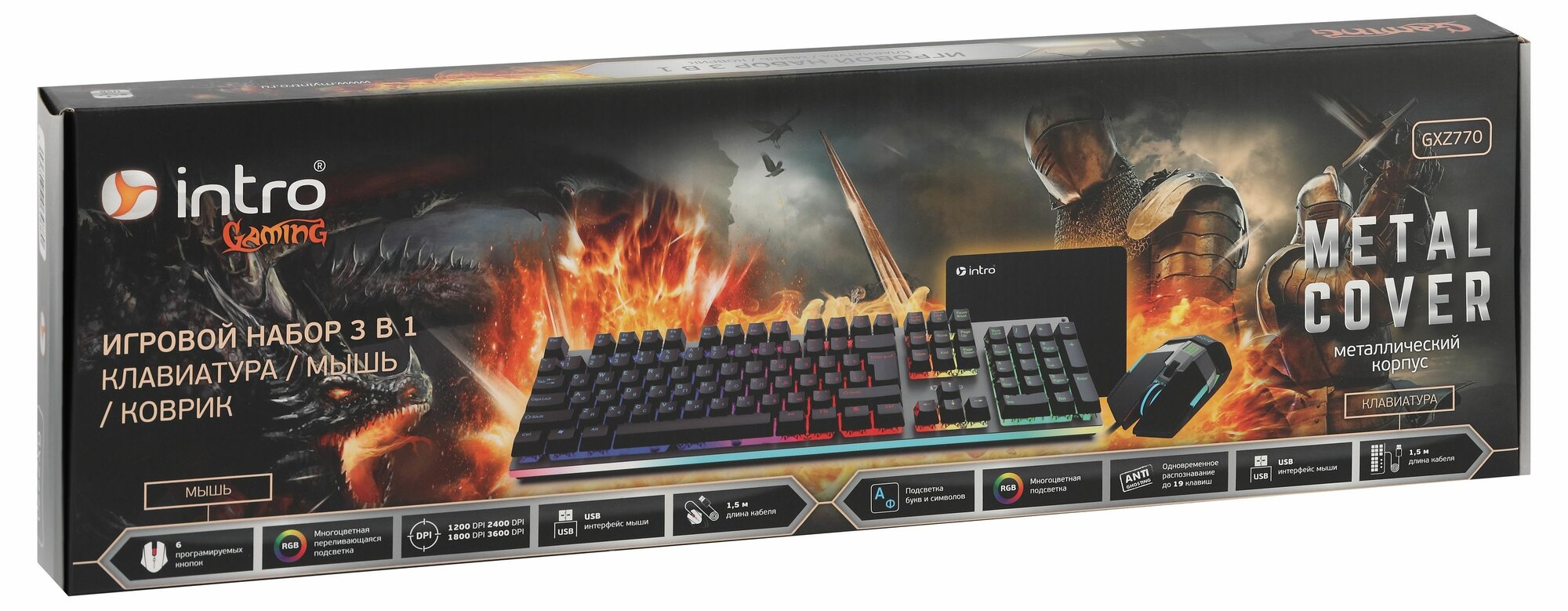 Купить Клавиатура и мышь игровой комплект Intro GXZ770 проводной игровой 1200-3600dpi + коврик