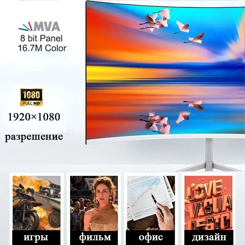 Игровой монитор FYHXele 24", изогнутый интересное: