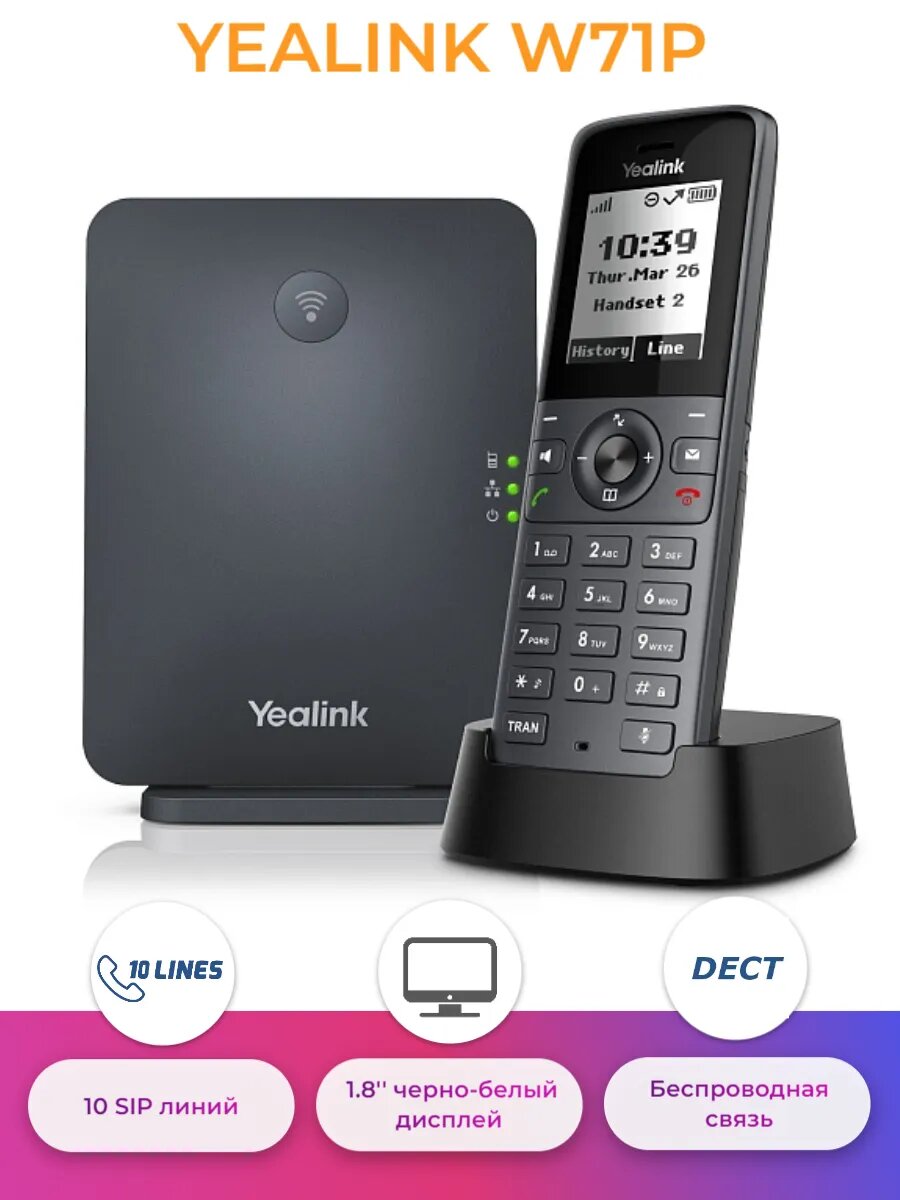IP телефон беспроводной SIP до 10 трубок W71P