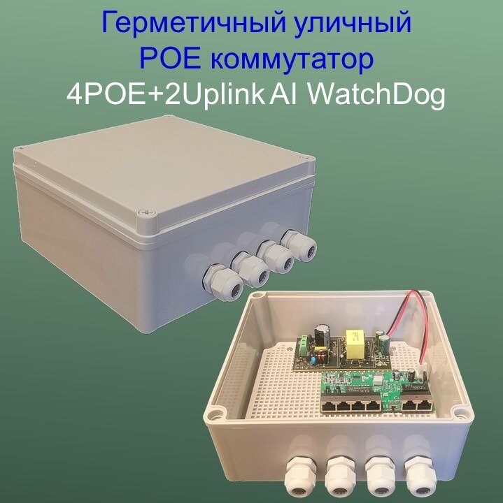 Купить Уличный POE(свитч) 4POE+2Uplink,100 Мбит/с, WatchDog+VLAN, Бюджет 65 Ватт,switch IC REALTEK