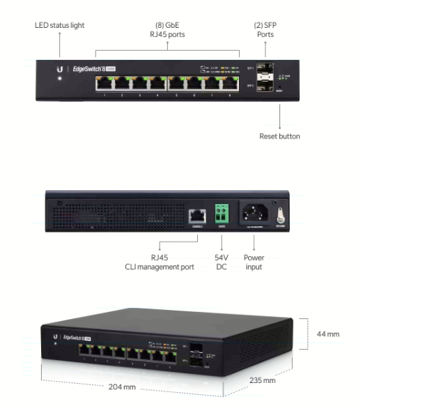 Ubiquiti Сетевое оборудование ES-8-150W Коммутатор 2х SFP, 8х Gigabit RJ45
