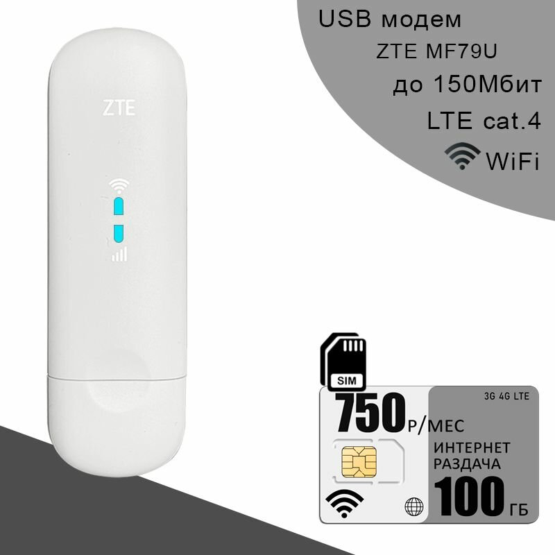 Купить USB модем ZTE MF79U (RU) I сим карта с интернетом, 100ГБ за 750р/мес