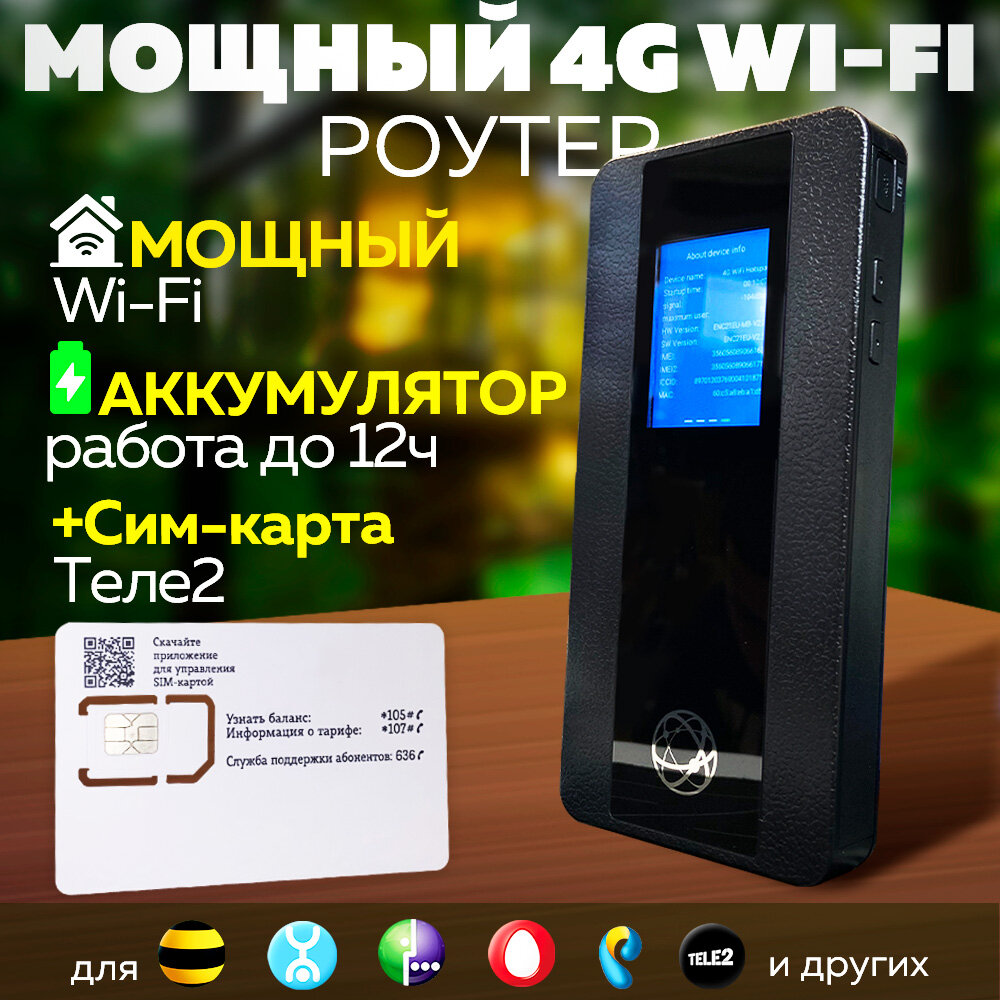 4G WiFi Модем Роутер с Дисплеем и Аккумулятором + Cим Tele2 интересное: