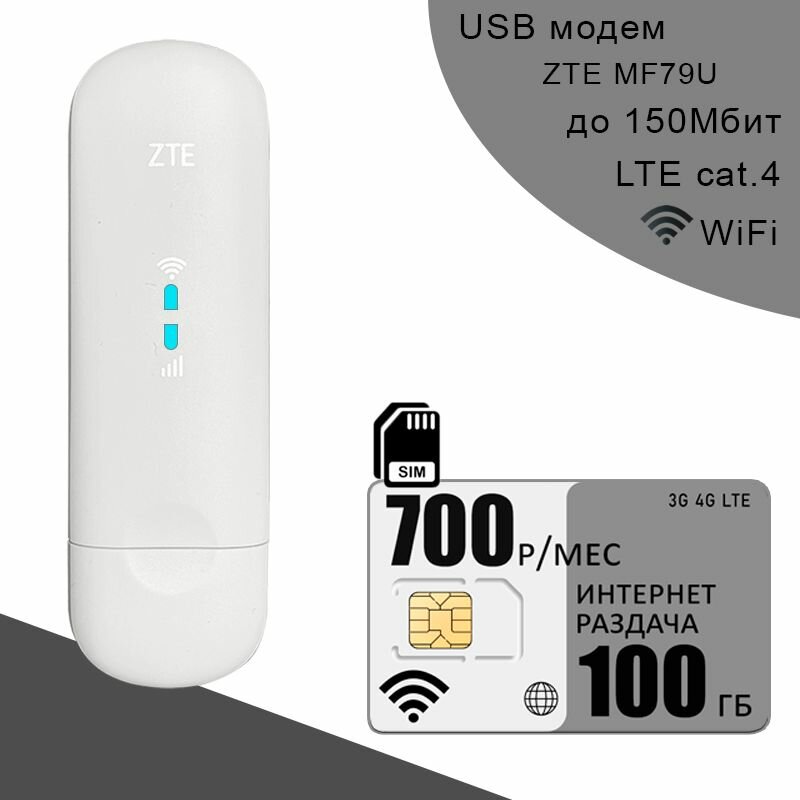Купить USB модем ZTE MF79U (RU) I сим карта с интернетом, 100ГБ за 700р/мес