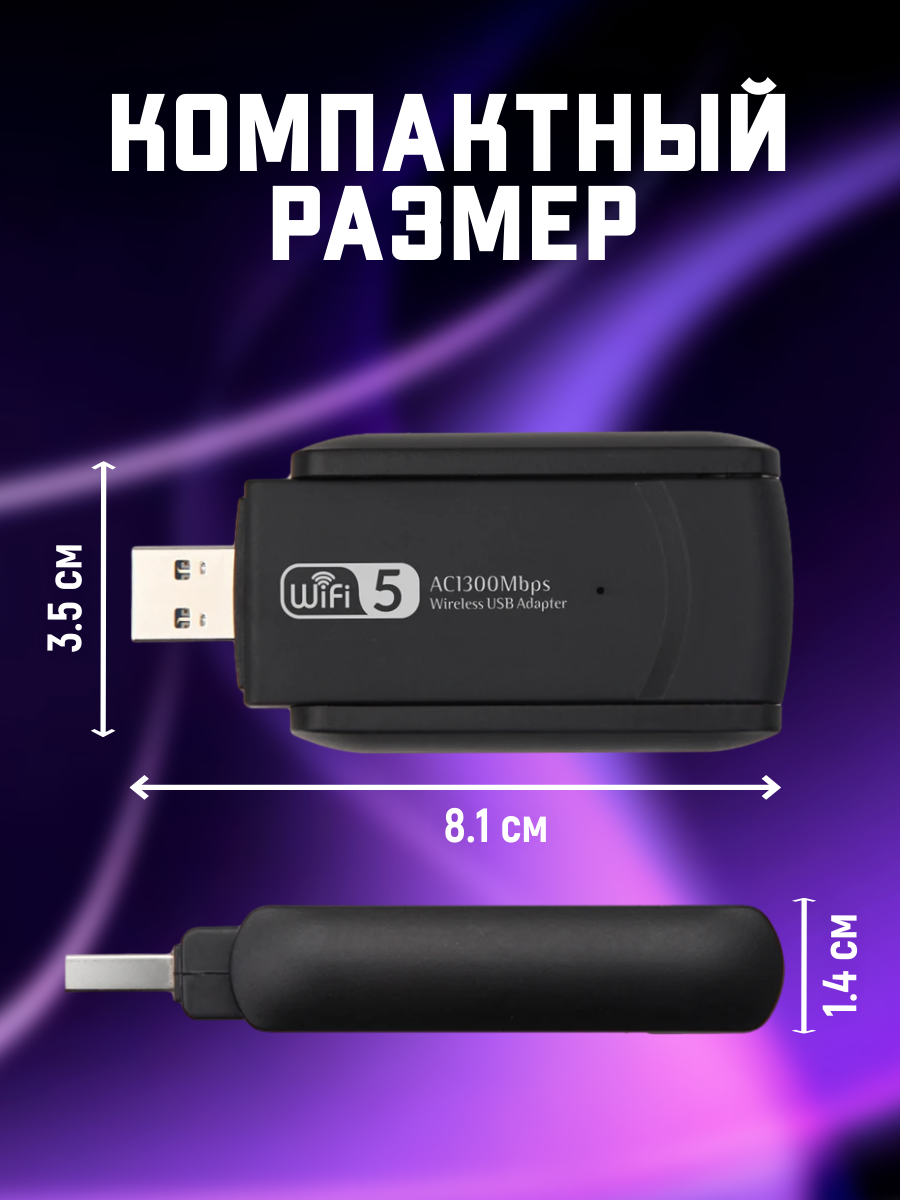 Купить Wifi адаптер 2.5/5G для компьютера и macbook 1300 Mbps