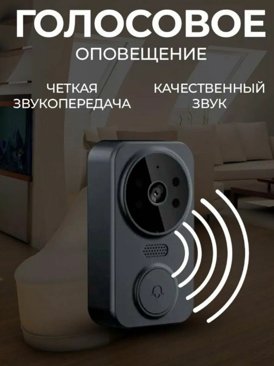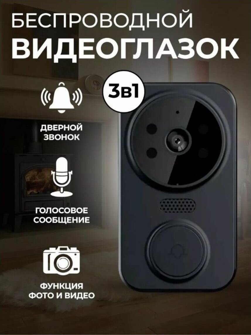 Многофункциональный беспроводной дверной видеозвонок с двухсторонней связью. черный. интересное: