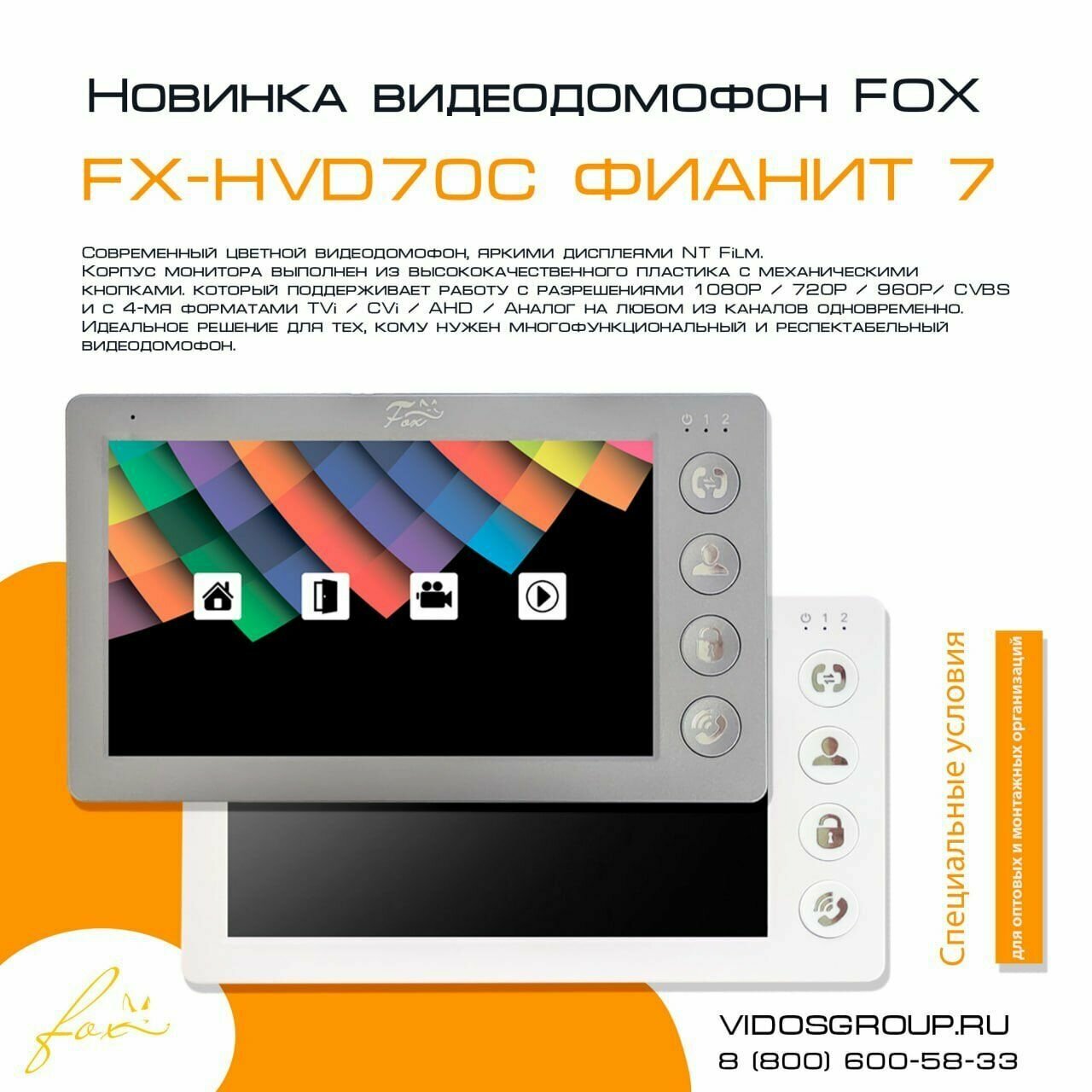 Цветной видеодомофон Fox FX-HVD70C (фианит 7А) интересное: