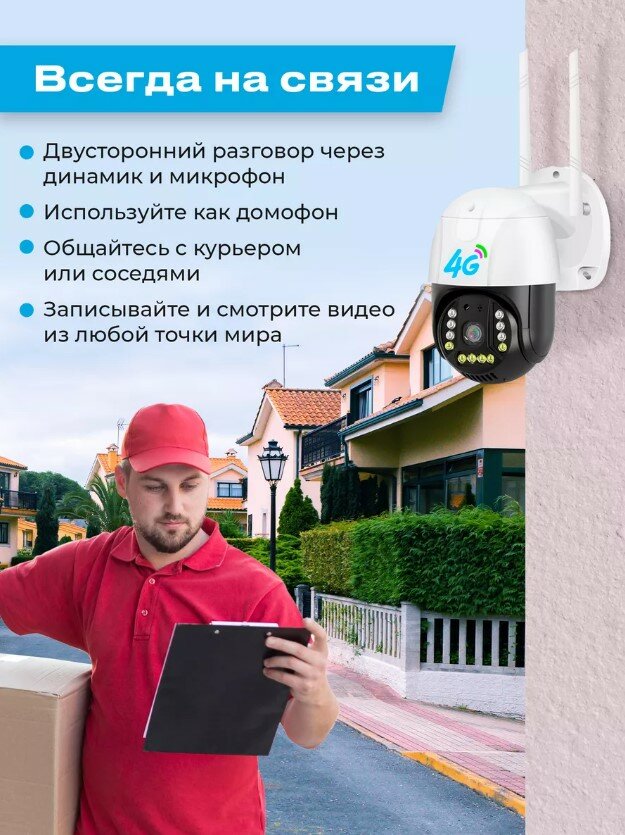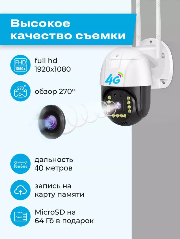 Уличная камера видеонаблюдения 4G,2MP с микрофоном и ночной съёмкой, датчик движения, поворотная, для дома и улицы интересное: