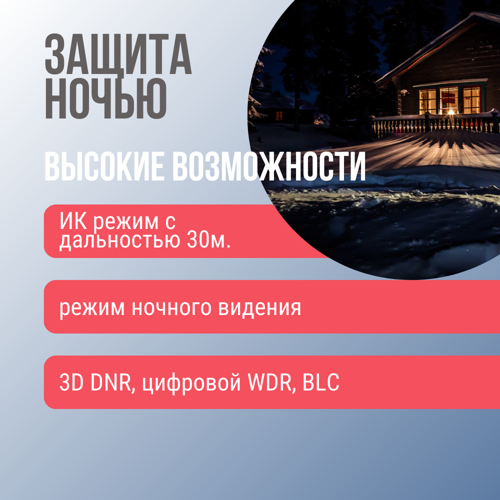 | Функции и особенности | DWDR / ИК-подсветка / ИК-фильтр / адаптер питания в комплекте / встроенный динамик / встроенный микрофон / компенсация задней засветки / ночной режим / поддержка P2P / поддержка WDR / слот для карт памяти / шумоподавление |