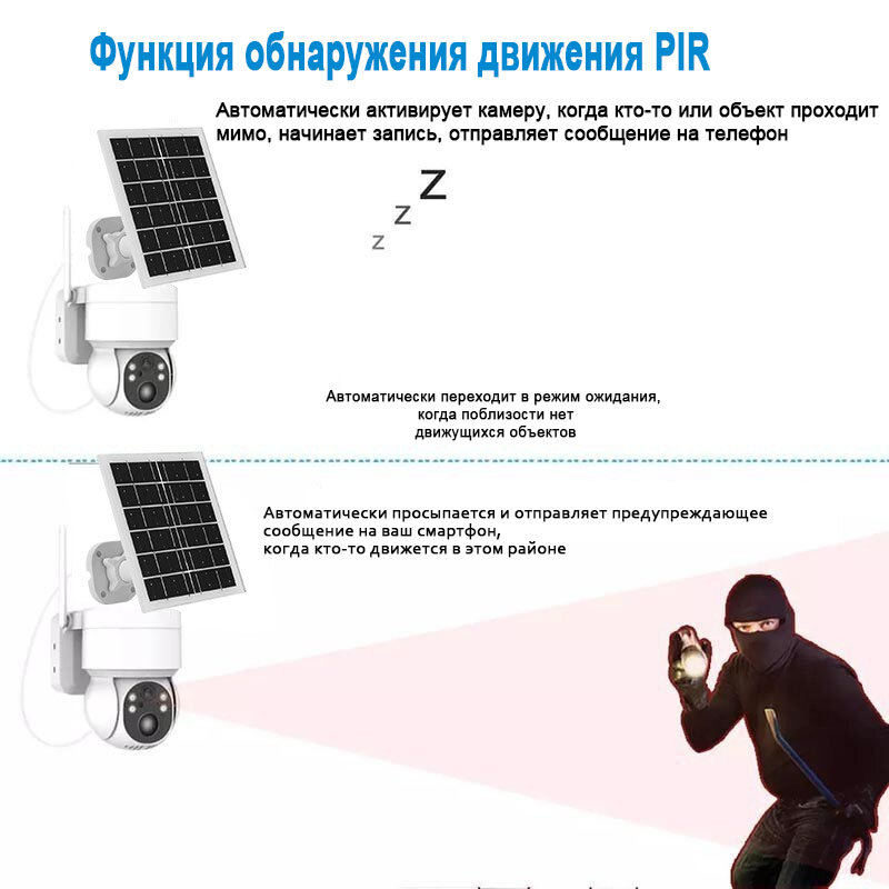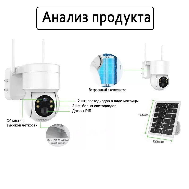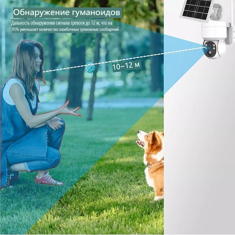 2.4G WiFi 2K солнечная маломощная сетевая камера наблюдения PIR для обнаружения гуманоидов интересное:
