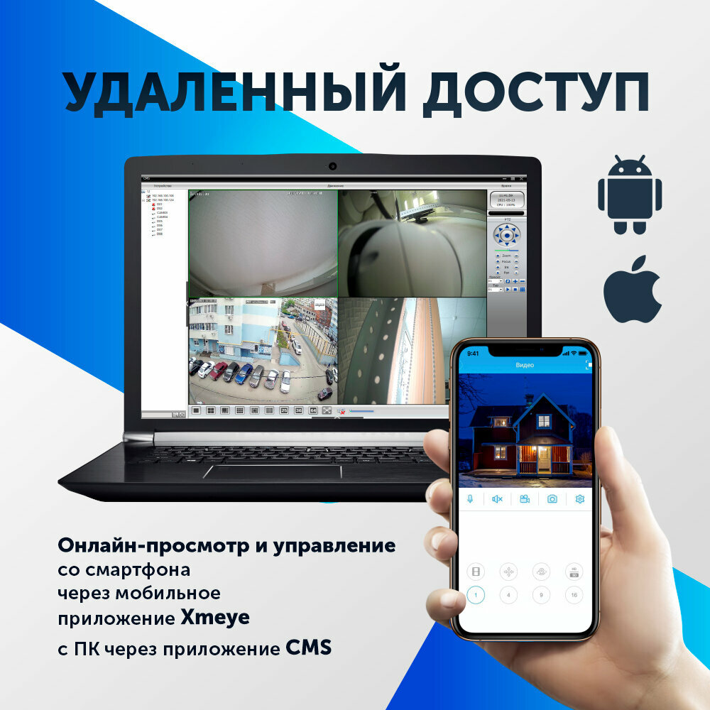 Полный 5mp комплект видеонаблюдения KDM 227-FV5 и HDCom-204-5M - уличное видеонаблюдение 4 камеры для дома