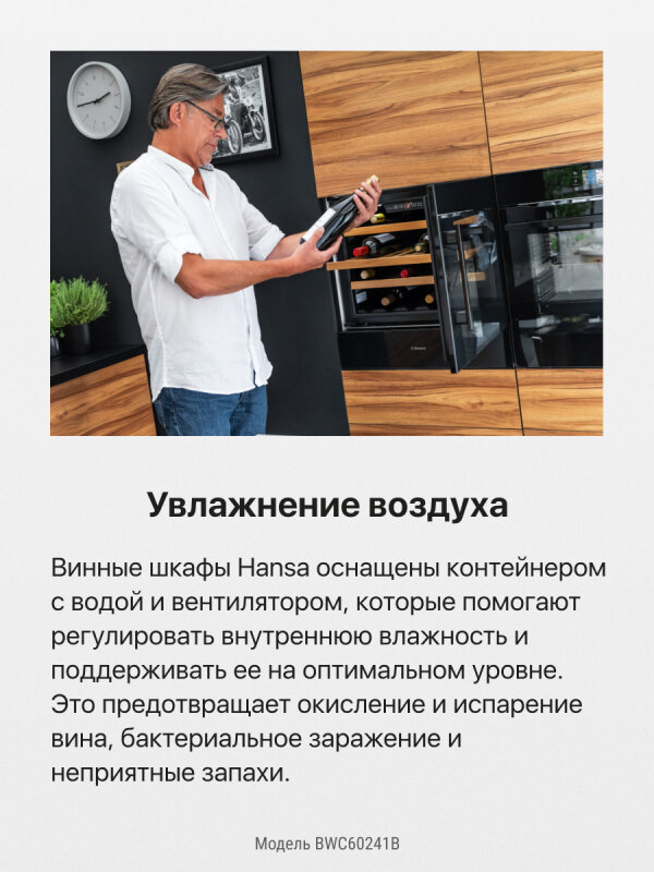 Встраиваемый винный шкаф Hansa BWC60241B, объем 63 л, с 3 полками из дерева на 24 бутылки, сенсорное управление, увлажнение воздуха, дверца с УФ-фильтром
