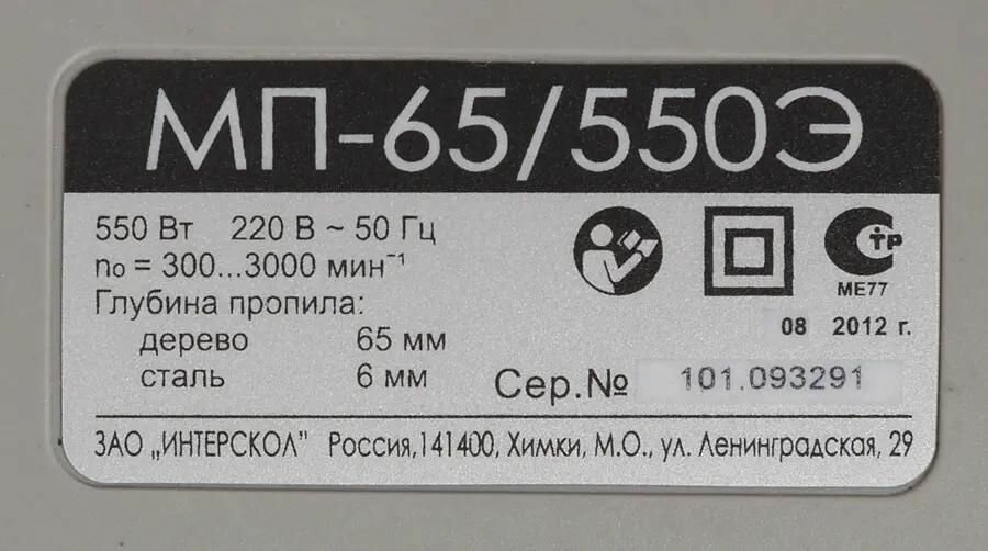 Электролобзик ИНТЕРСКОЛ МП-65/550Э (101.1.1.00)