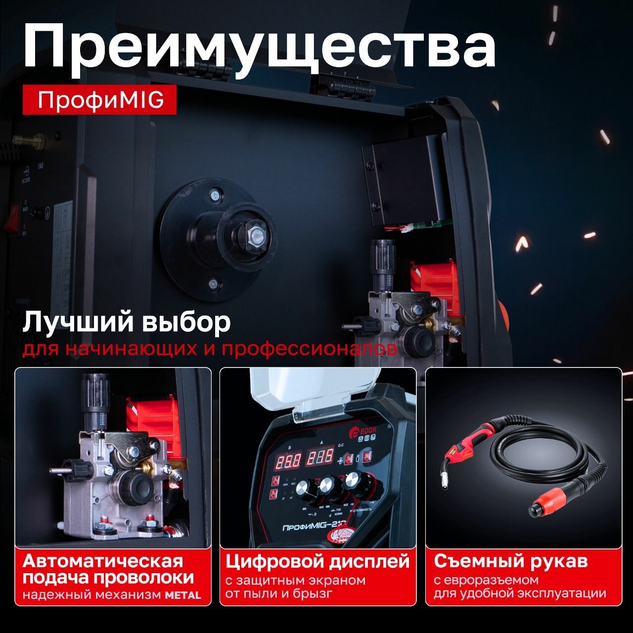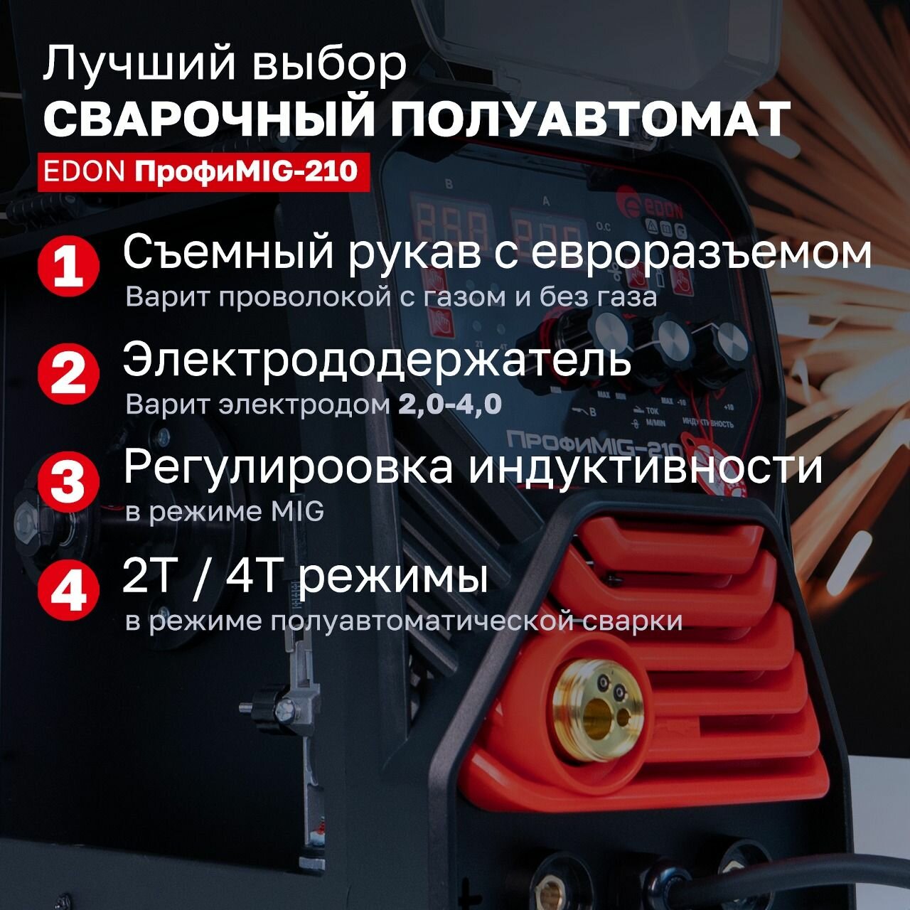 Сварочный полуавтомат EDON ПрофиMIG-230 7кВт 20-200А, MMA 9,0кВт