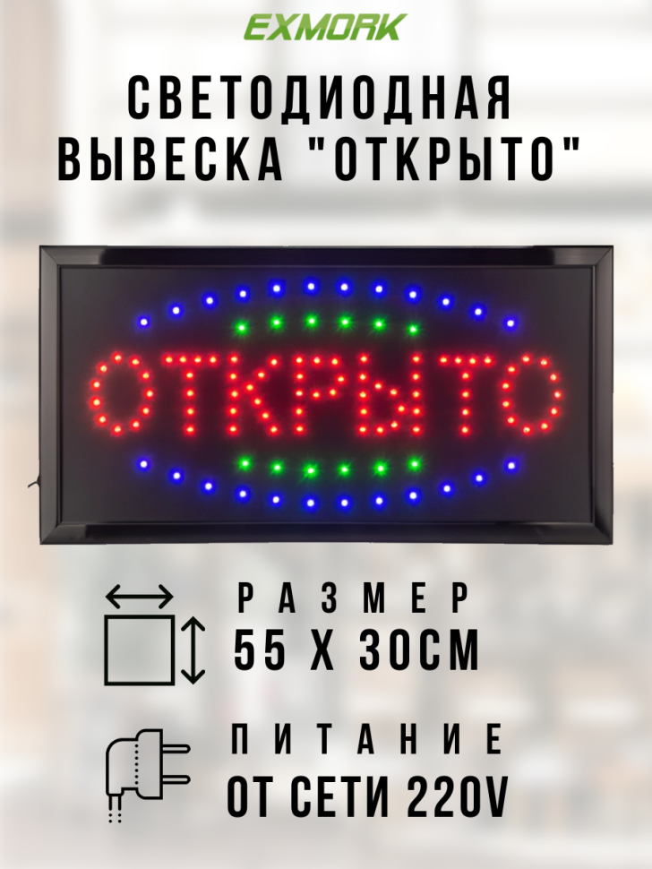 Светодиодная табличка "Открыто" 55х30 см интересное: