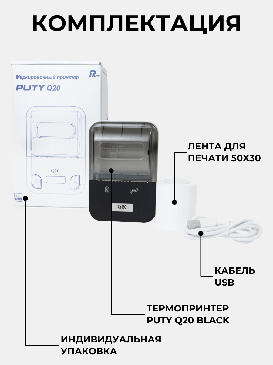 Принтер для печати этикеток и наклеек Puty Q20, черный (Q20black) интересное: