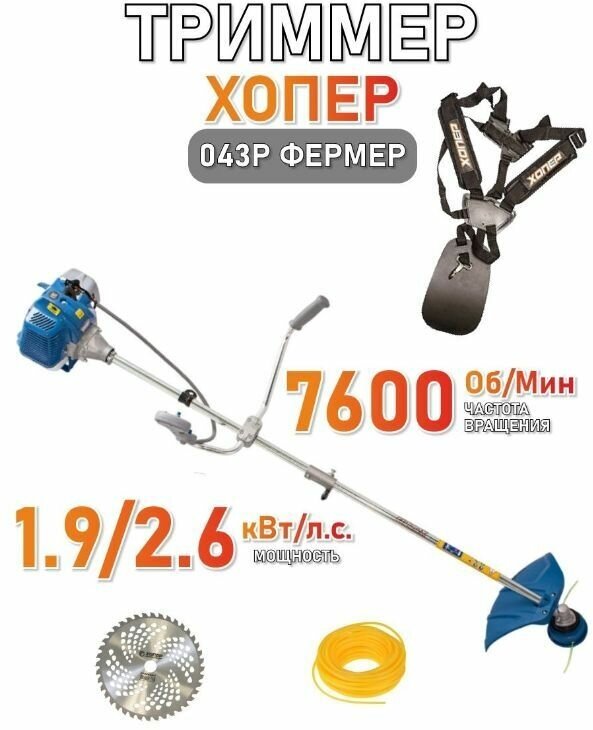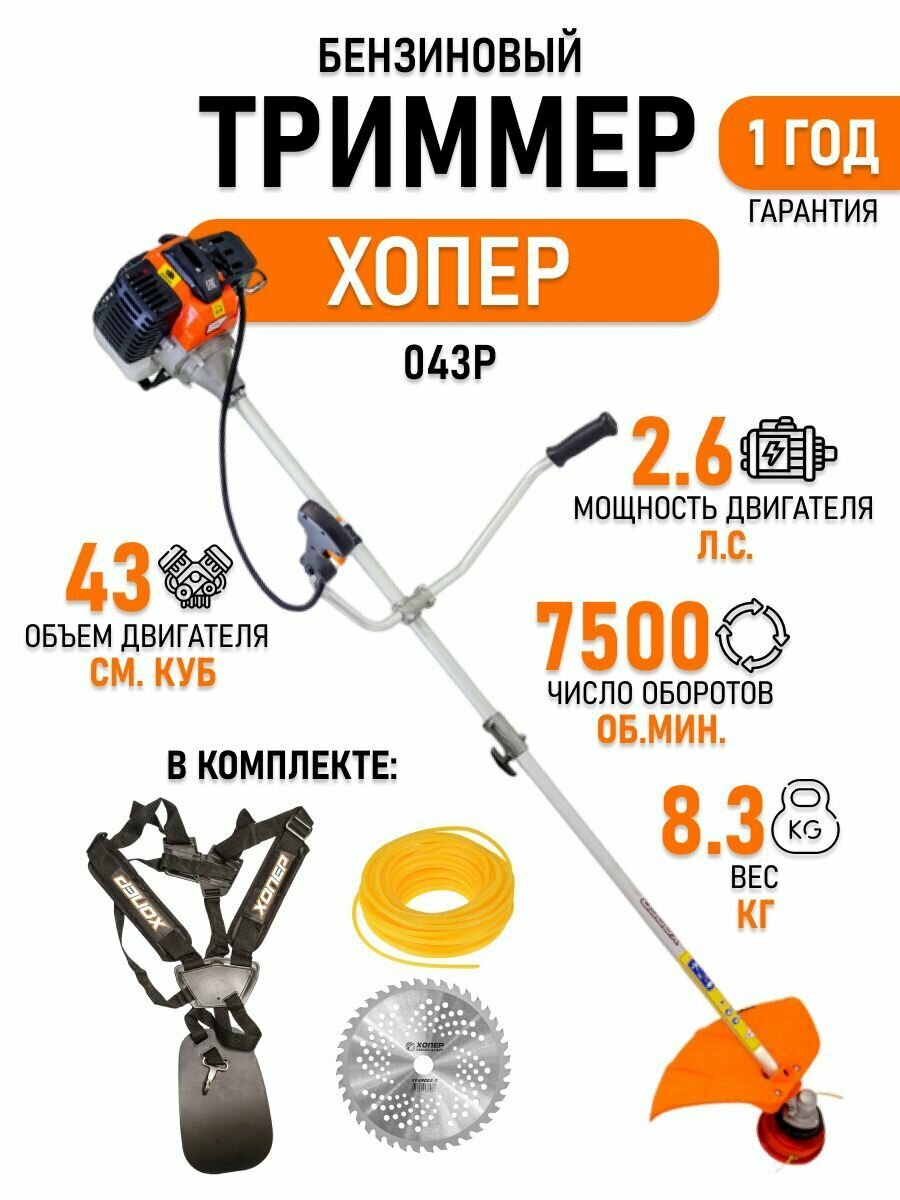 Триммер бензиновый, Хопер, 043, 2.5 л.с., 43 куб.см, U-ручка, леска/нож интересное: