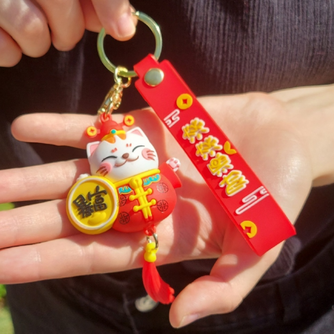 Купить Брелок для ключей кошечка Манеки-Неко с монеткой привлечение денег и финансового успеха