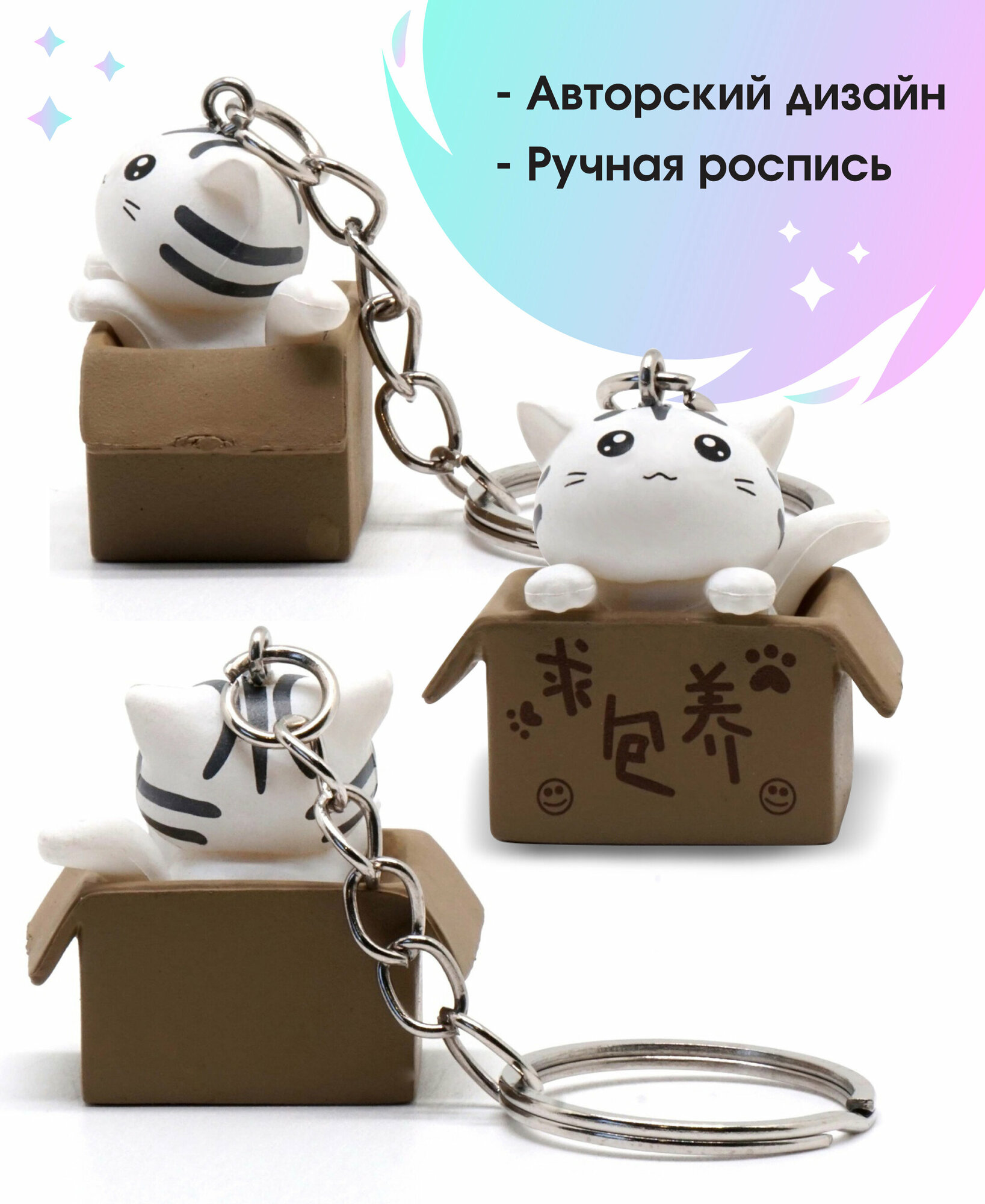 Купить Брелок "Котенок в коробке" белый