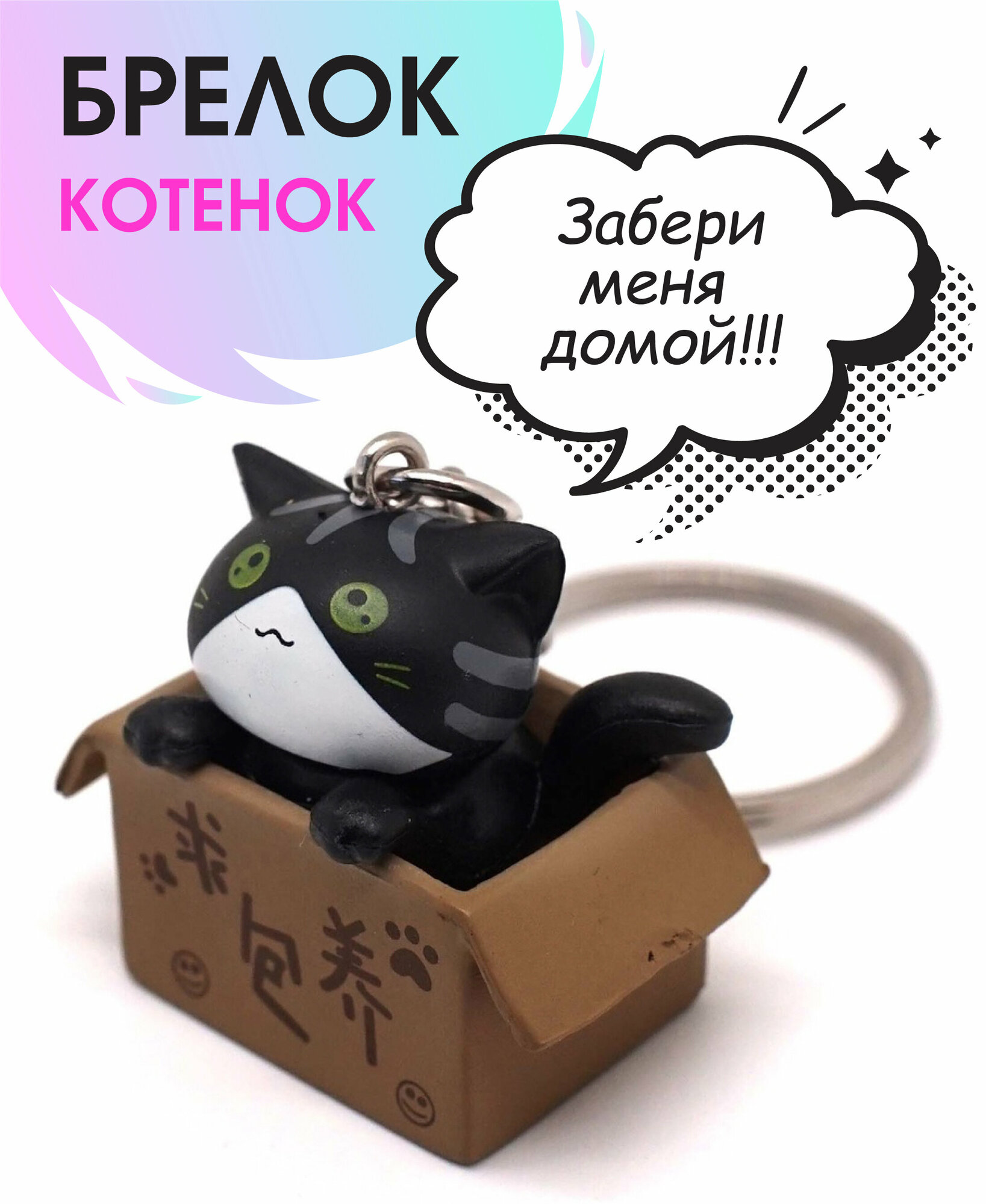 Купить Брелок "Котенок в коробке" черный