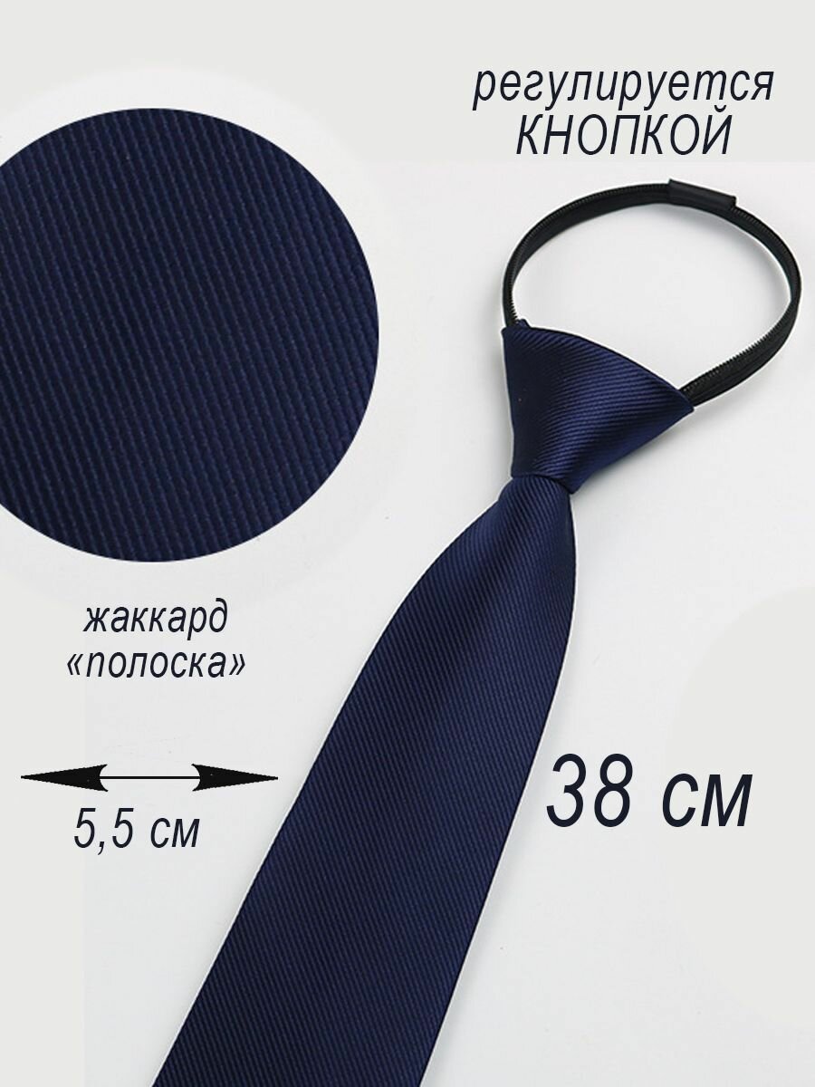Галстук на застежке кнопка школьный синий 35 жаккард полоска интересное: