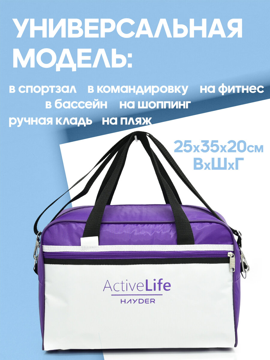 Сумка спортивная HAYDER, 15 л, 20х25х35 см, ручная кладь, фиолетовый