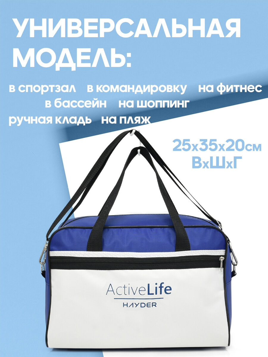 Сумка спортивная HAYDER, 15 л, 20х25х35 см, ручная кладь, ярко-синий