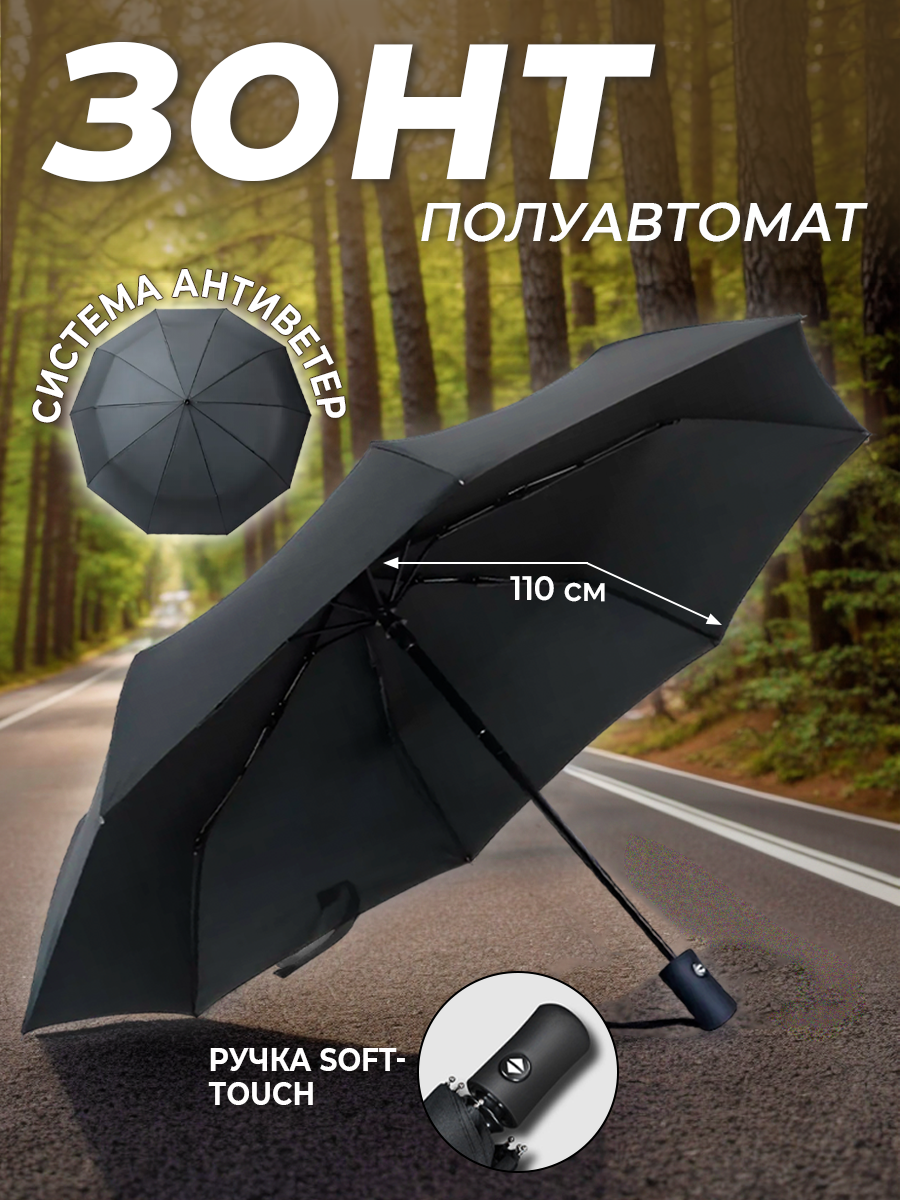 Мужской зонт складной 3 сложения, полуавтомат