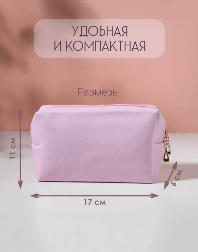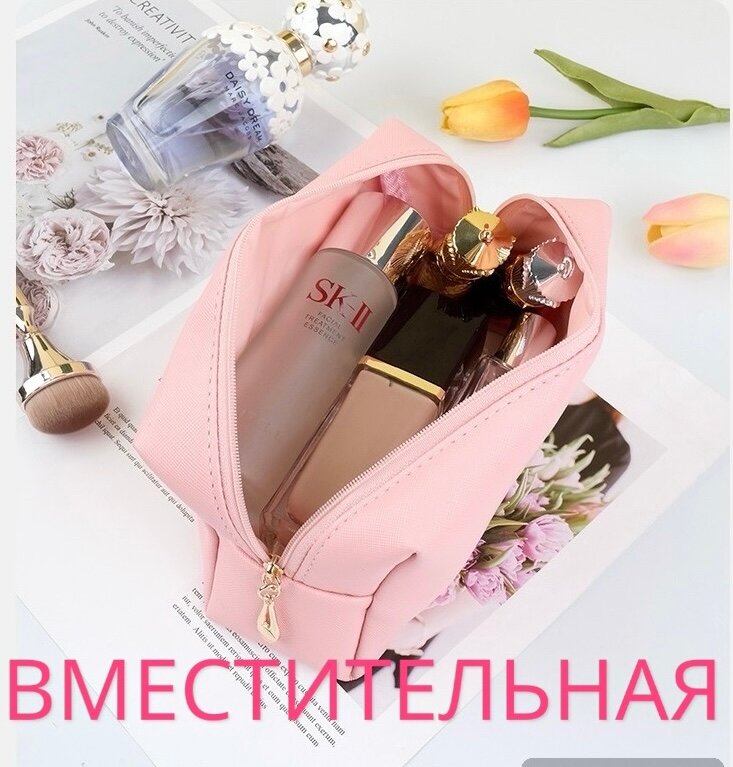 Косметичка женская для косметики и принадлежностей / дорожная, вместительная, на молнии. Розовая. интересное: