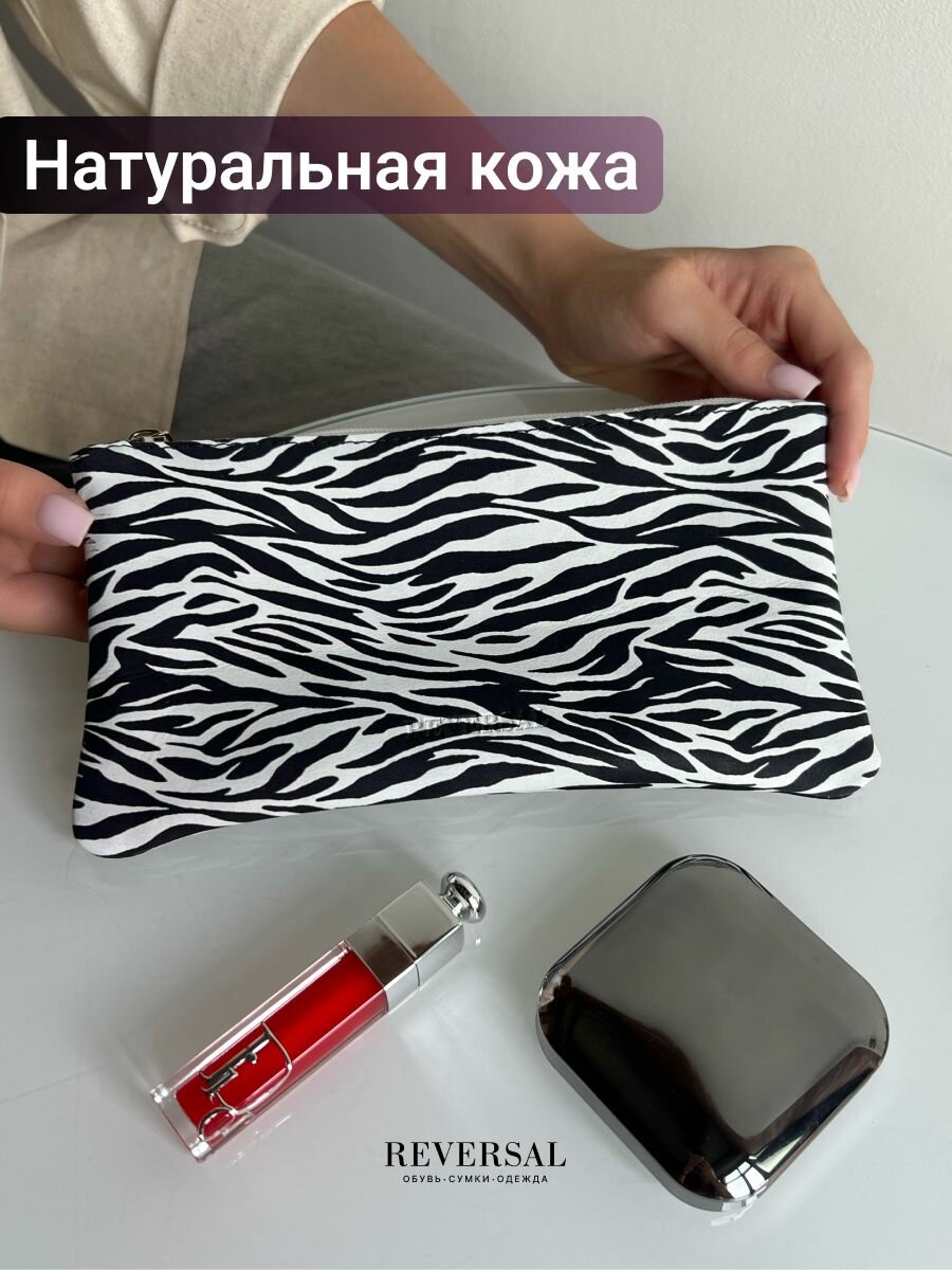Косметичка натуральная кожа на молнии плоская,Reversal,8856R_Зебра интересное: