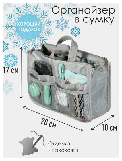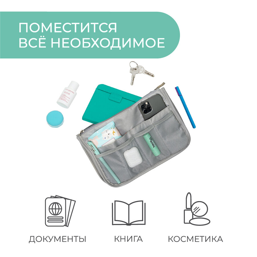 Органайзер для сумки SOFIA 28х17х10см, серый / Косметичка / Сумочка для аксессуаров и мелочей интересное: