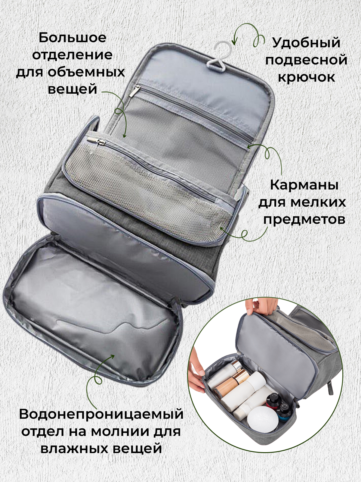 Косметичка подвесная с крючком органайзер дорожный