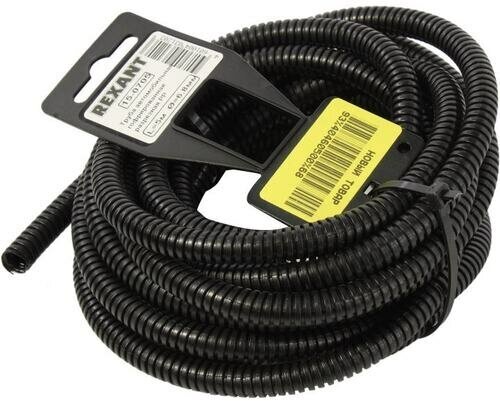Труба автомобильная гофрированная Rexant, Ø 6.8 мм, разрезная (бухта 5 м) {15-0705}