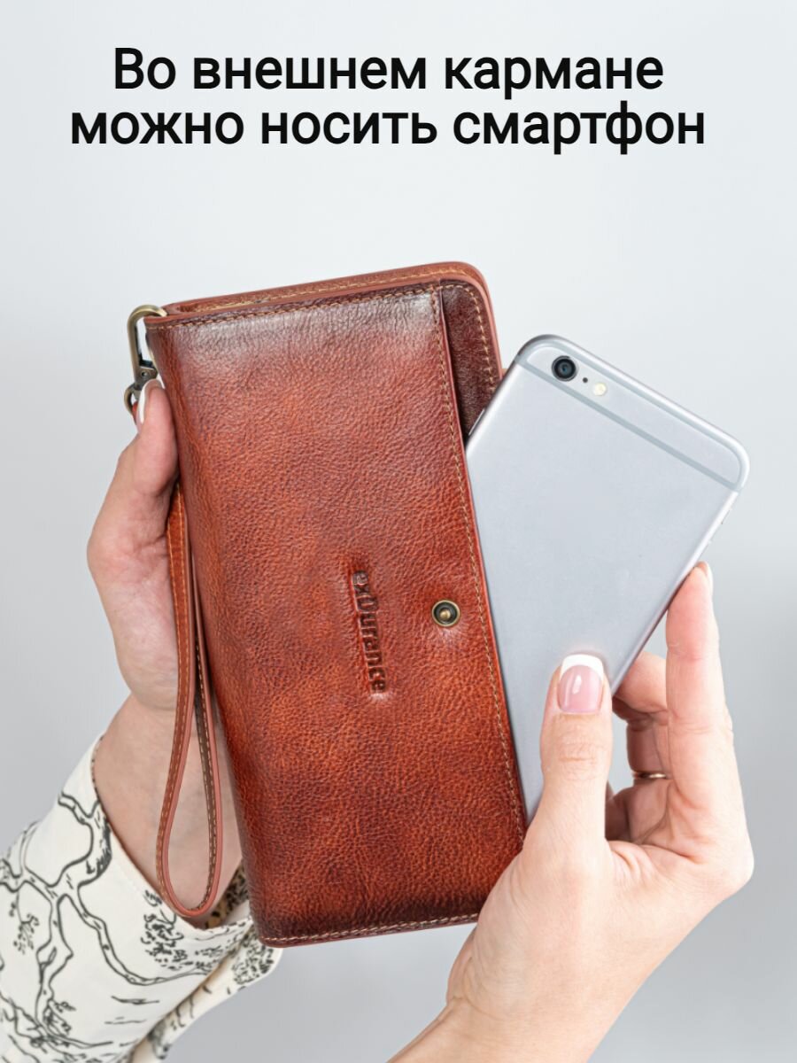 Большой кошелек женский из натуральной кожи для денег, телефона, карт, документов