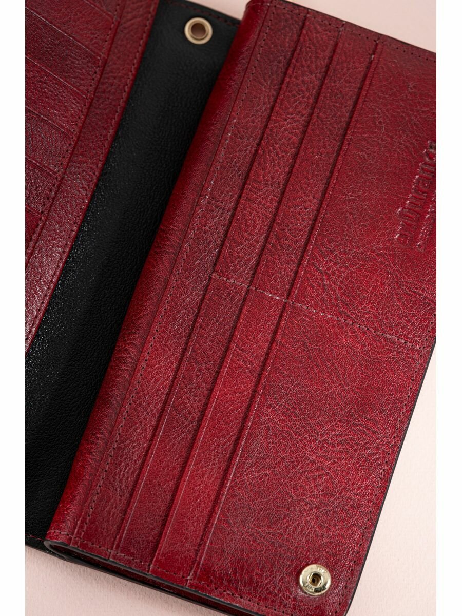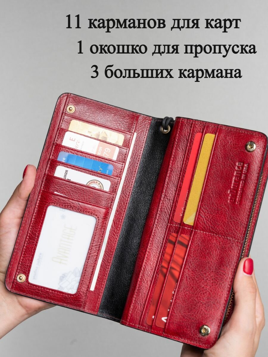 Большой кошелек женский из натуральной кожи красный для денег, телефона, карт, документов