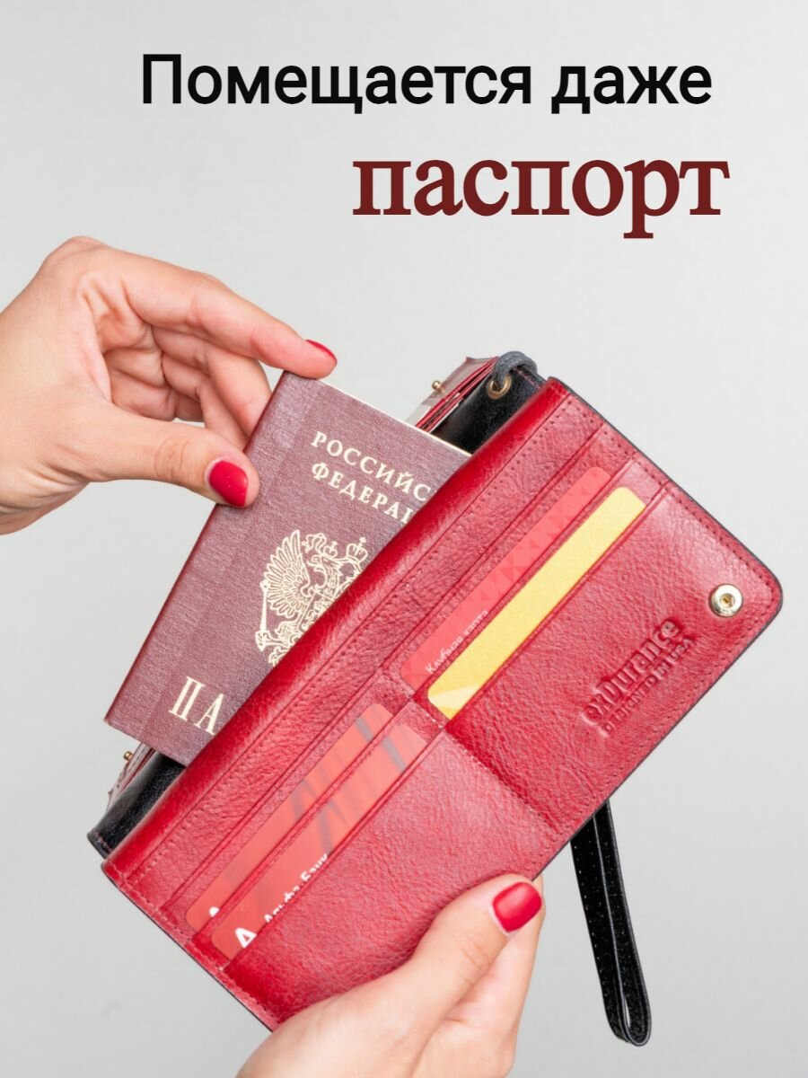 Купить Большой кошелек женский из натуральной кожи для денег, телефона, карт, документов