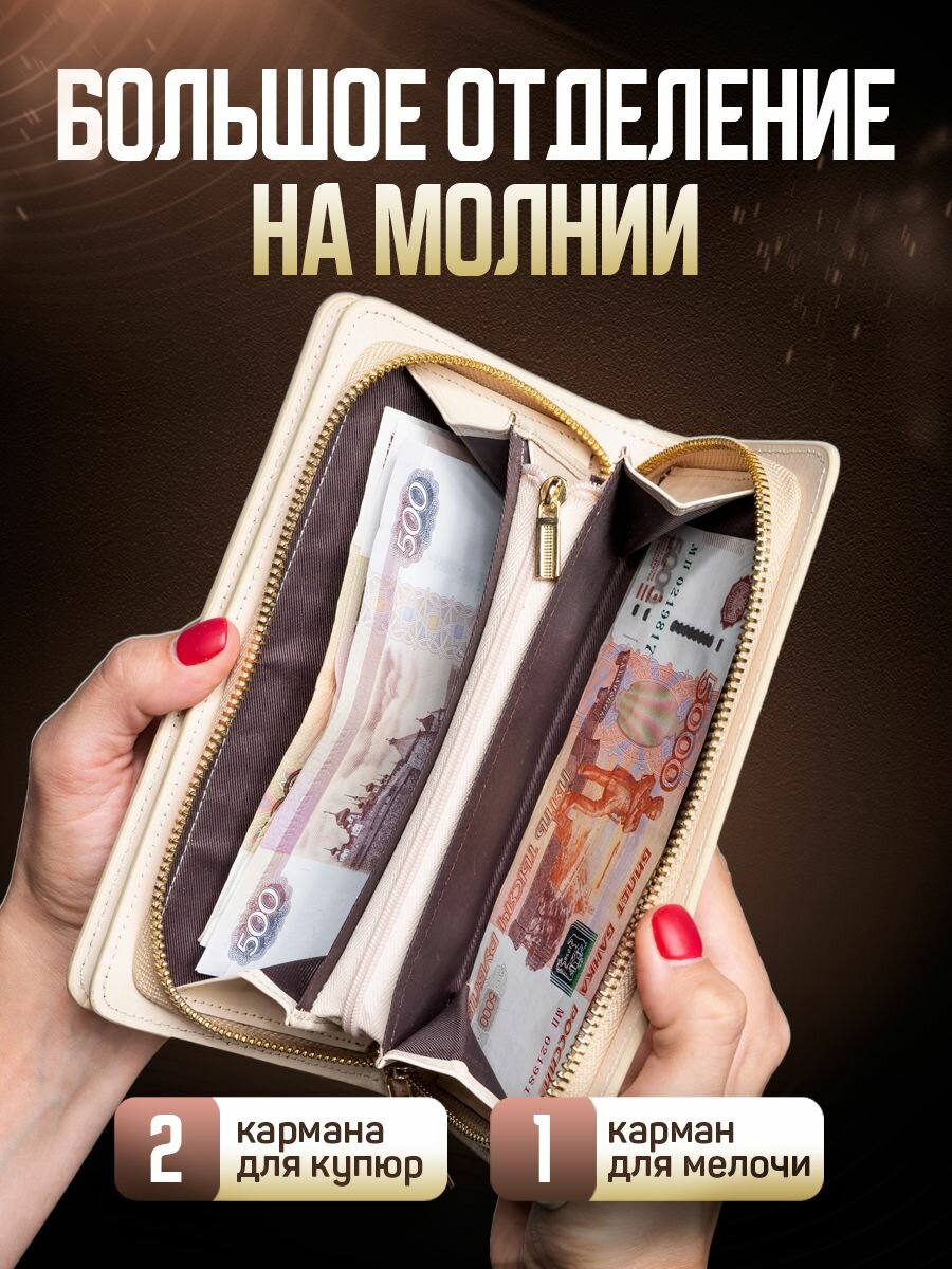 Большой кошелек женский из натуральной кожи для денег, телефона, карт, документов